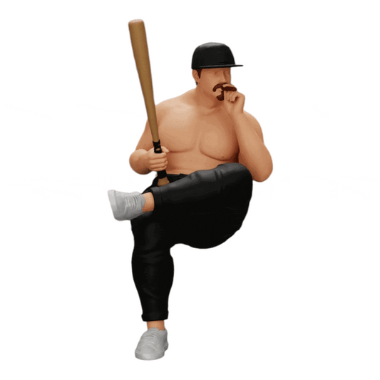 Miniatur Figur: Sitzender Gangster mit Mütze und Baseballschläger raucht (Nr. a4)