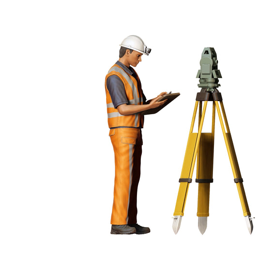 Miniatur Figur Straßenarbeiter mit Stativ: Landvermesser auf der Baustelle (Nr. 231)