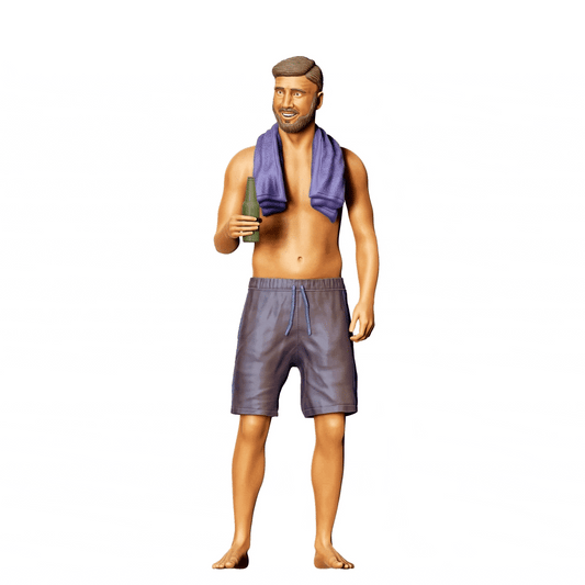 Miniatur Figur: Pool Party Gäste - Mann mit Handtuch und Bierflasche (Nr. 321)