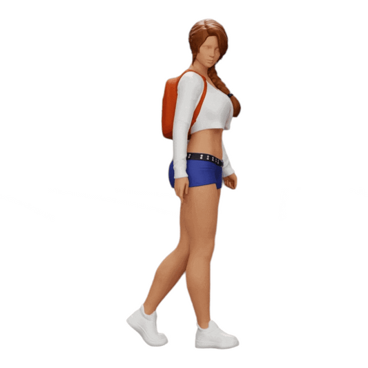 Miniatur Figur: Sexy Mädchen, in Shorts, Minishirt und Rucksack (Nr. a0)