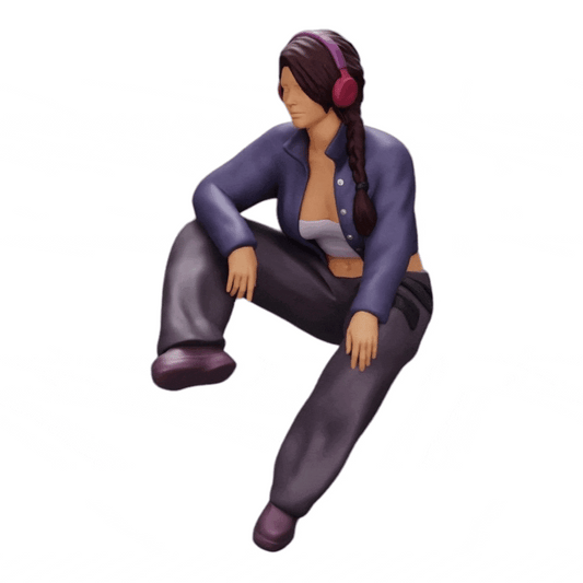 Miniatur Figur: Junges Mädchen sitzt und hört Musik mit Kopfhörern (Nr. a42)