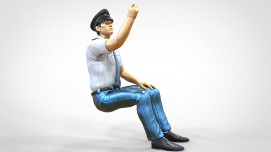 Miniatur Figur Pilot in Uniform sitzend: Flugzeug Personal - betätigt Schalter (Nr. 242)