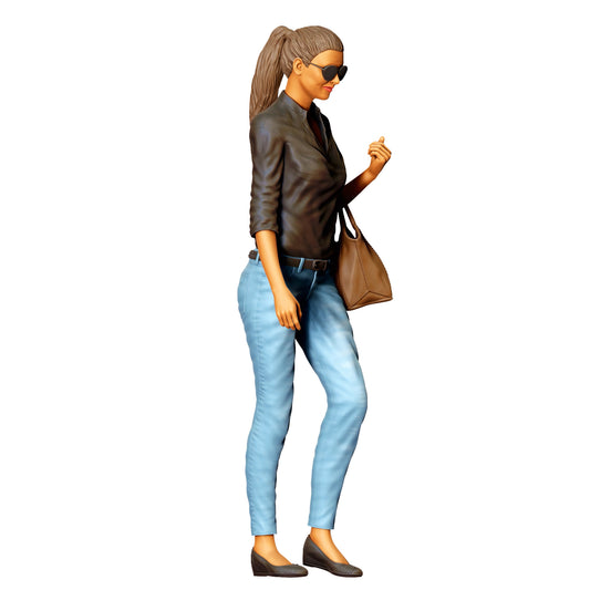 Frau mit Sonnenbrille und Handtasche – Figur in Jeans und Lederjacke (Ref. Nr. 423)