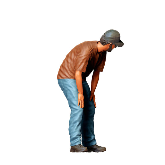 Miniatur Figur: Mann gebückt betrachtet Auto - Autoszene (Nr. 363)