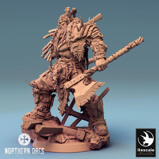 Fantasy Figur: Ork Warlord / Kriegshäuptling Azhrog, Barbar-Champion mit gezackter Zweihand-Axt (24_04_E3)