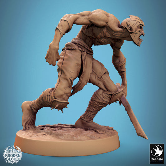 Tabletop Miniatur: Ghul Berserker Ravager, sprintender Unhold-Schlächter mit Krummschwert (24_11_C21)